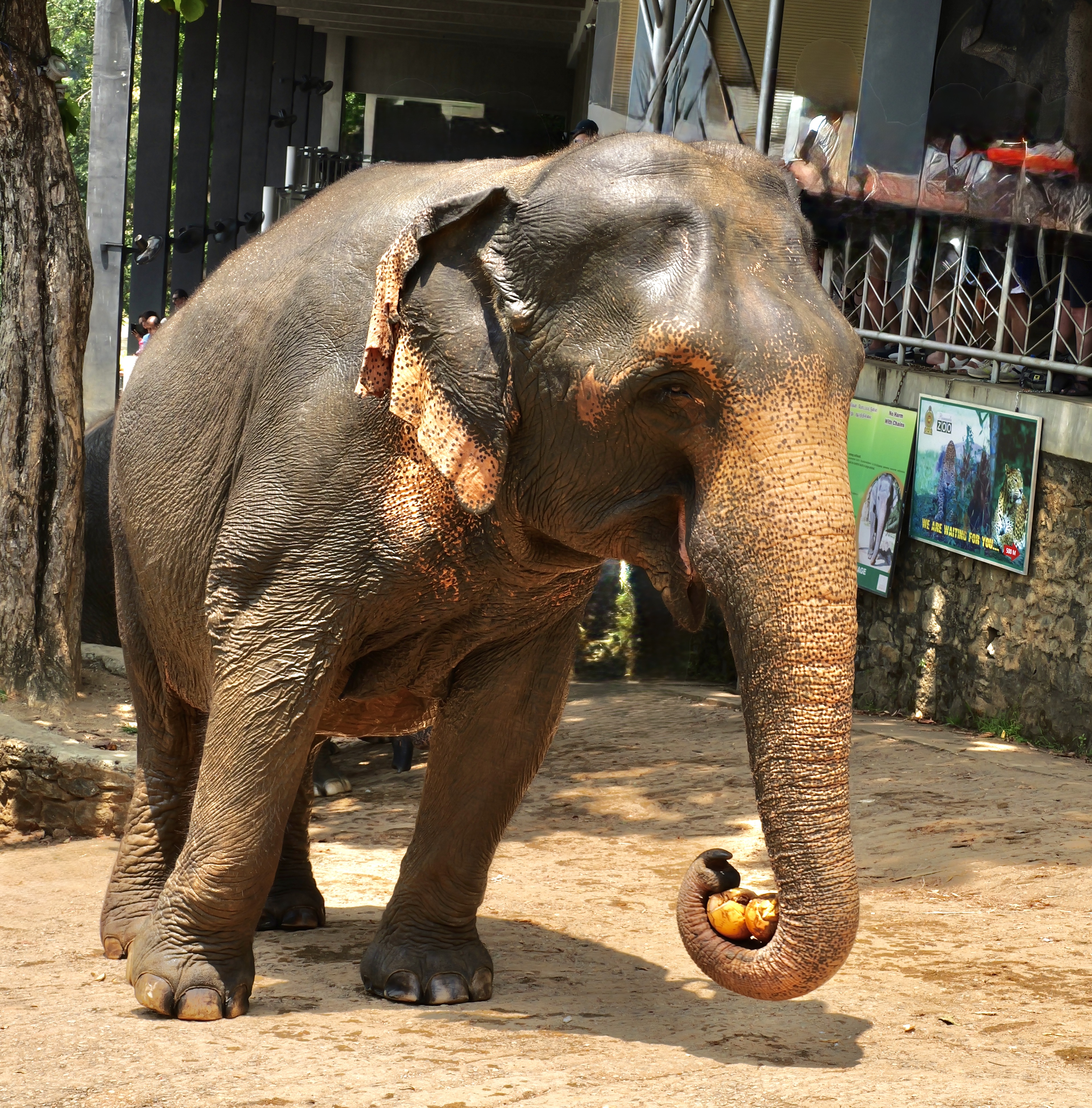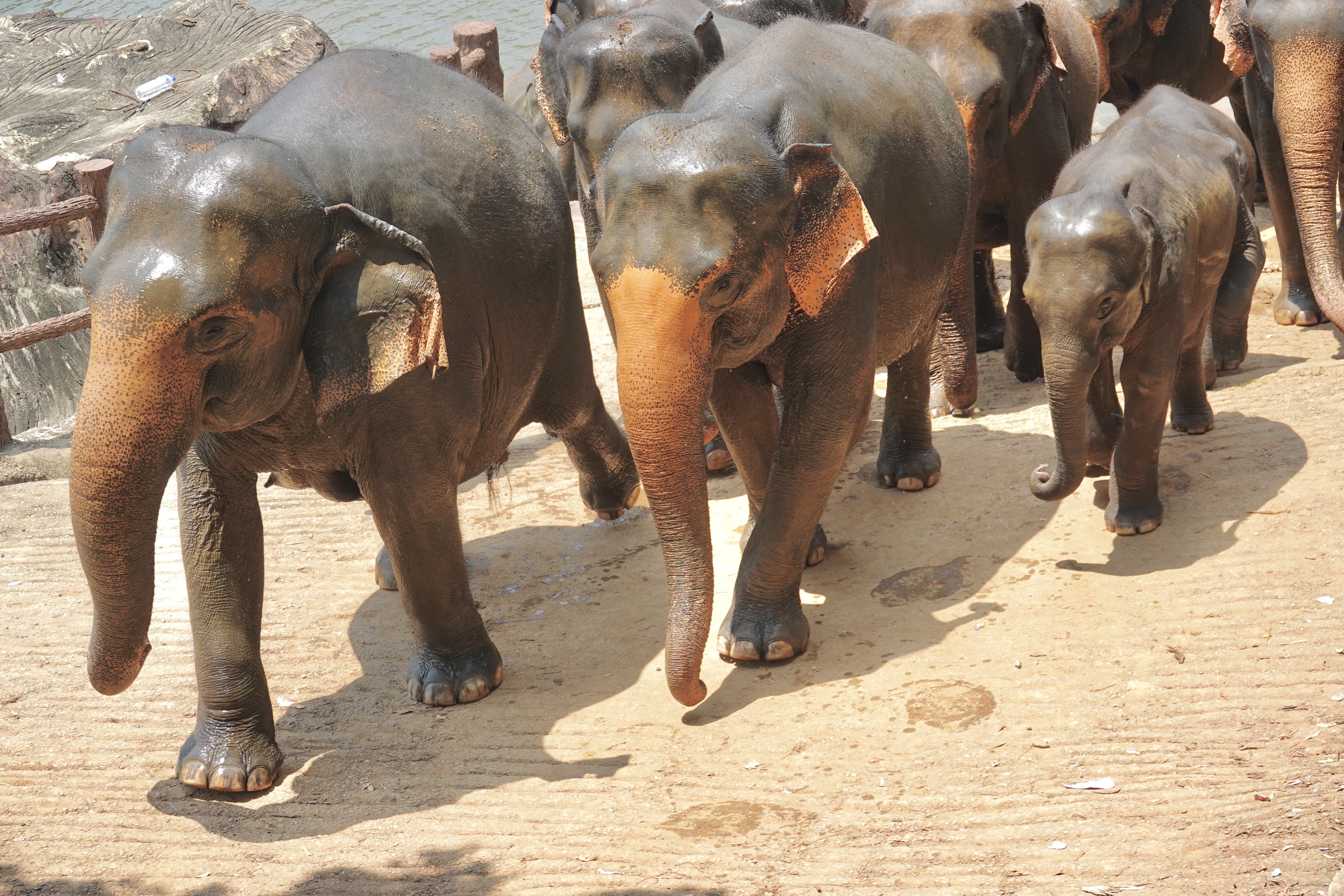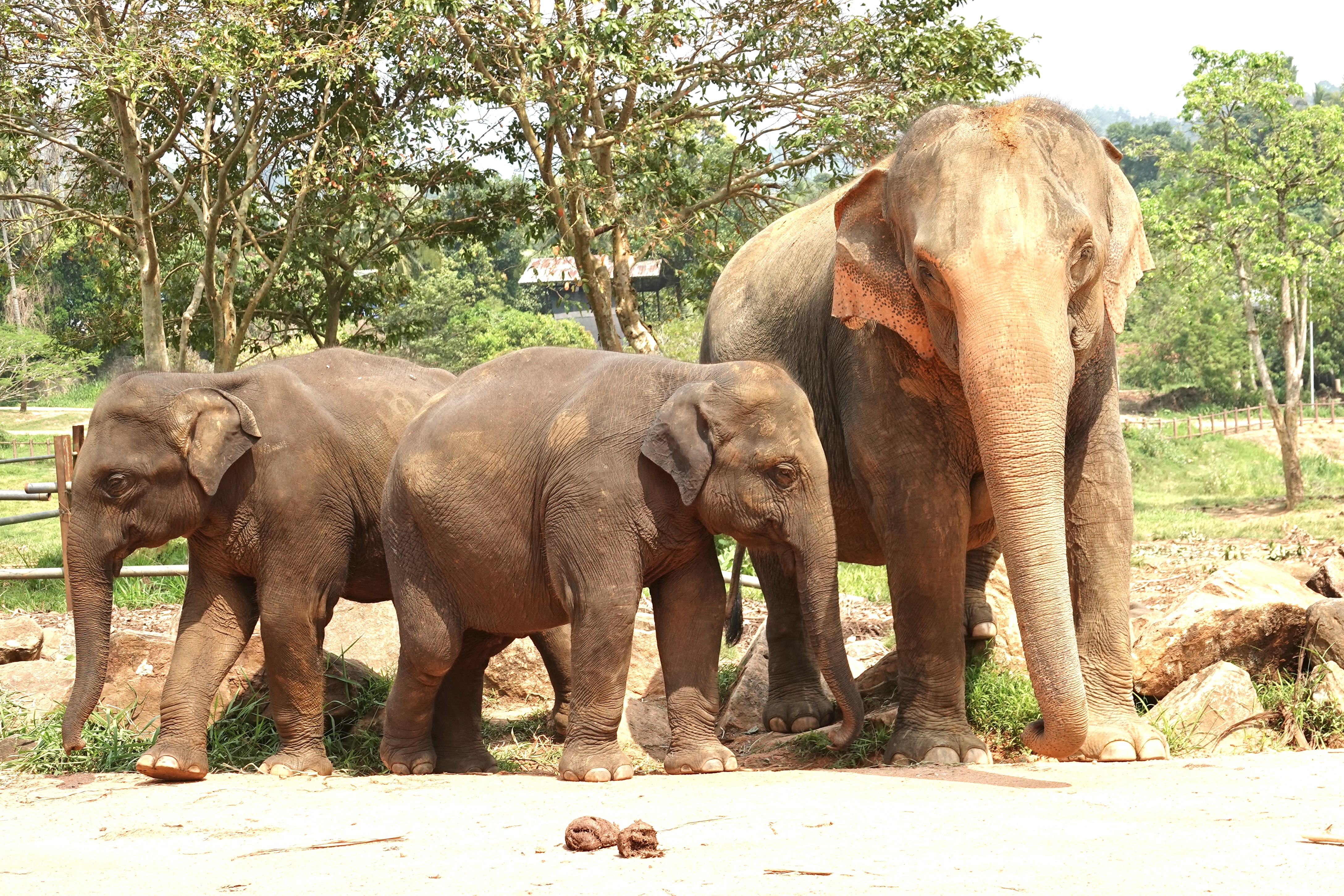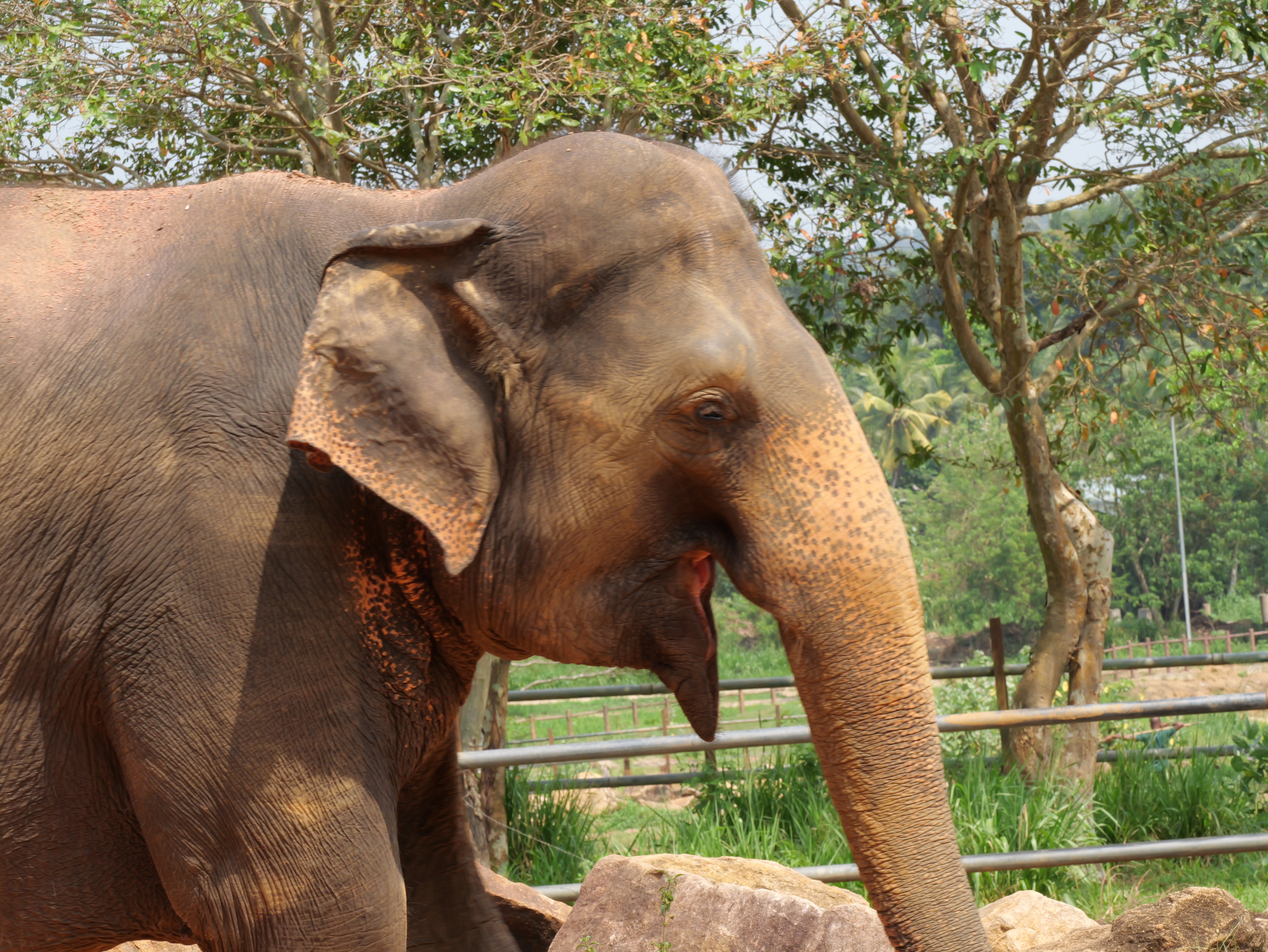 Sri Lanka has 22 million people and more than 6,000 wild elephants in a very small island, southeast of India. The beginnings of this complex are 5 orphaned elephants, put under the care of the government. Expanded to include injured animals, it has become a premier breeding program for the Sri Lankan elephant, a subset of the Asian Elephant.