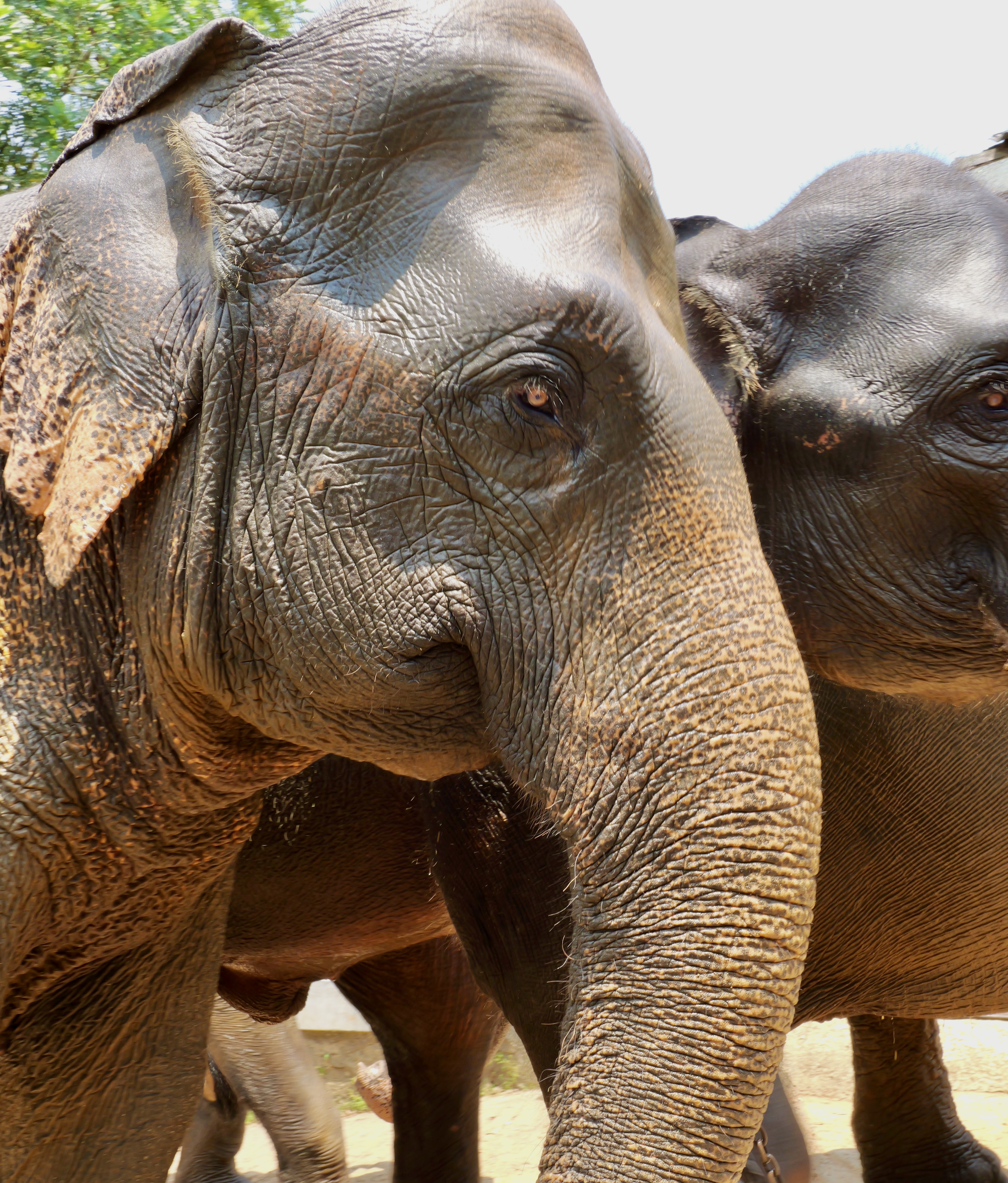 The elephants follow a daily routine that mimics their natural behaviors in the wild. They are taken to the river for their daily bath, they can cool off and socialize. This is where David and Karen entered their daily routine, at the river. . . We saw the water canons spraying the herd and all the cute antics, the pachyderm’s interaction with others. We waited on the sidelines, while the elephants walked through town and back to their home, and then we followed up by visiting the orphanage, saw the refreshed elephants in the natural habitat, and saw the afternoon bathers get ready for their river time.